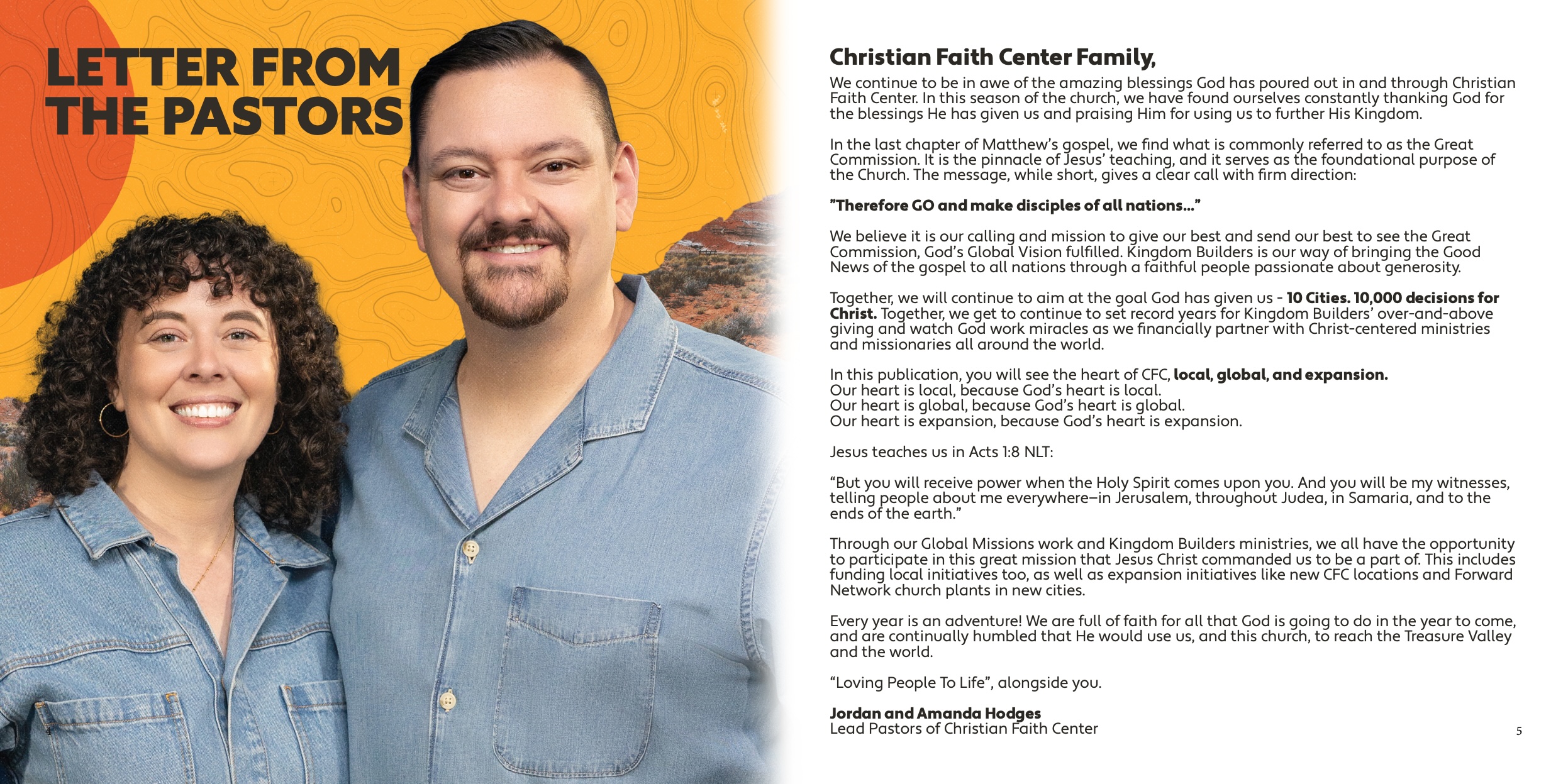Kingdom Builders is one of the ways that we “love people to life” at CFC. We understand that every person must hear the gospel and we have a missional responsibility to do something about it. When we give generously as a church family, it enables us to partner with ministries and projects around the world that are advancing the Kingdom of God. This maximizes our impact.